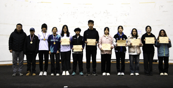 体育教学部大学生体质健康中心副主任李国一,为女子组最佳裁判员(公共卫生学院云旦希珍、第一临床医学院姚怡帆、基础医学院王冉)、女子组优秀裁判员(第一临床医学院宫思羽),及男子组最佳裁判员(医学信息工程学院翟文硕、基础医学院鲁鸿睿、第一临床医学院宫思羽)、男子组优秀裁判员(高巨涵等)颁发奖牌。这些学生裁判以专业判罚保障了赛事公平,成为赛场外的“隐形英雄”。